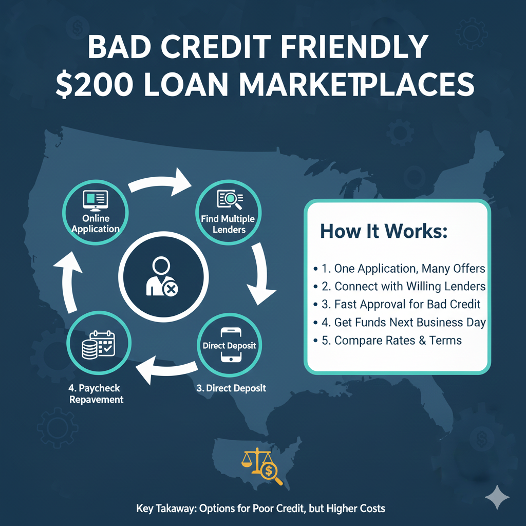 Finding a $200 loan with bad credit can feel difficult, especially if traditional lenders turn you away. Fortunately, bad credit friendly online loan marketplaces connect you with lenders that focus more on your income and bank history than your credit score. These platforms let you compare multiple offers with one application and find transparent loan options that may fund quickly when you need emergency cash.