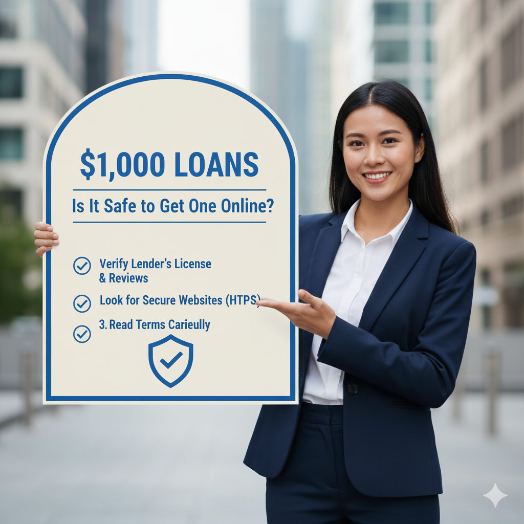 - A $1,000 loan online is safe when the lender is licensed, transparent, and reputable.